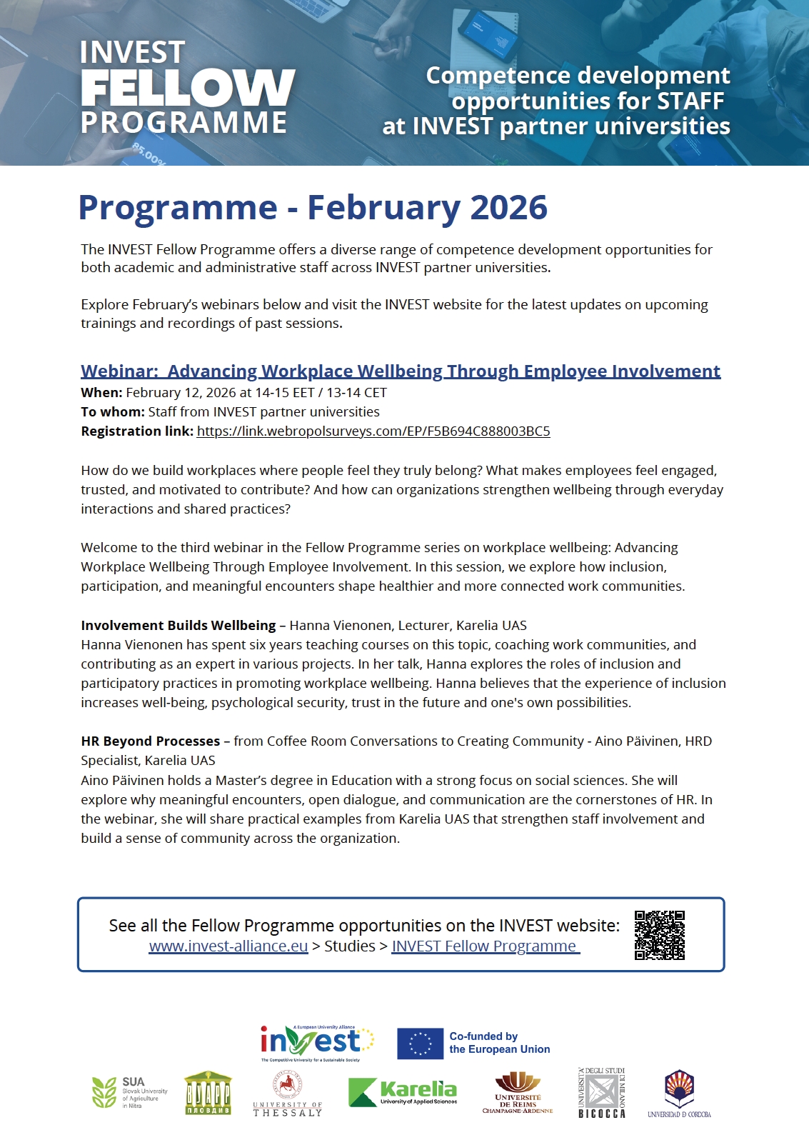 Welcome to the third webinar in the Fellow Programme series on workplace wellbeing: Advancing Workplace Wellbeing Through Employee Involvement. In this session, we explore how inclusion, participation, and meaningful encounters shape healthier and more connected work communities.